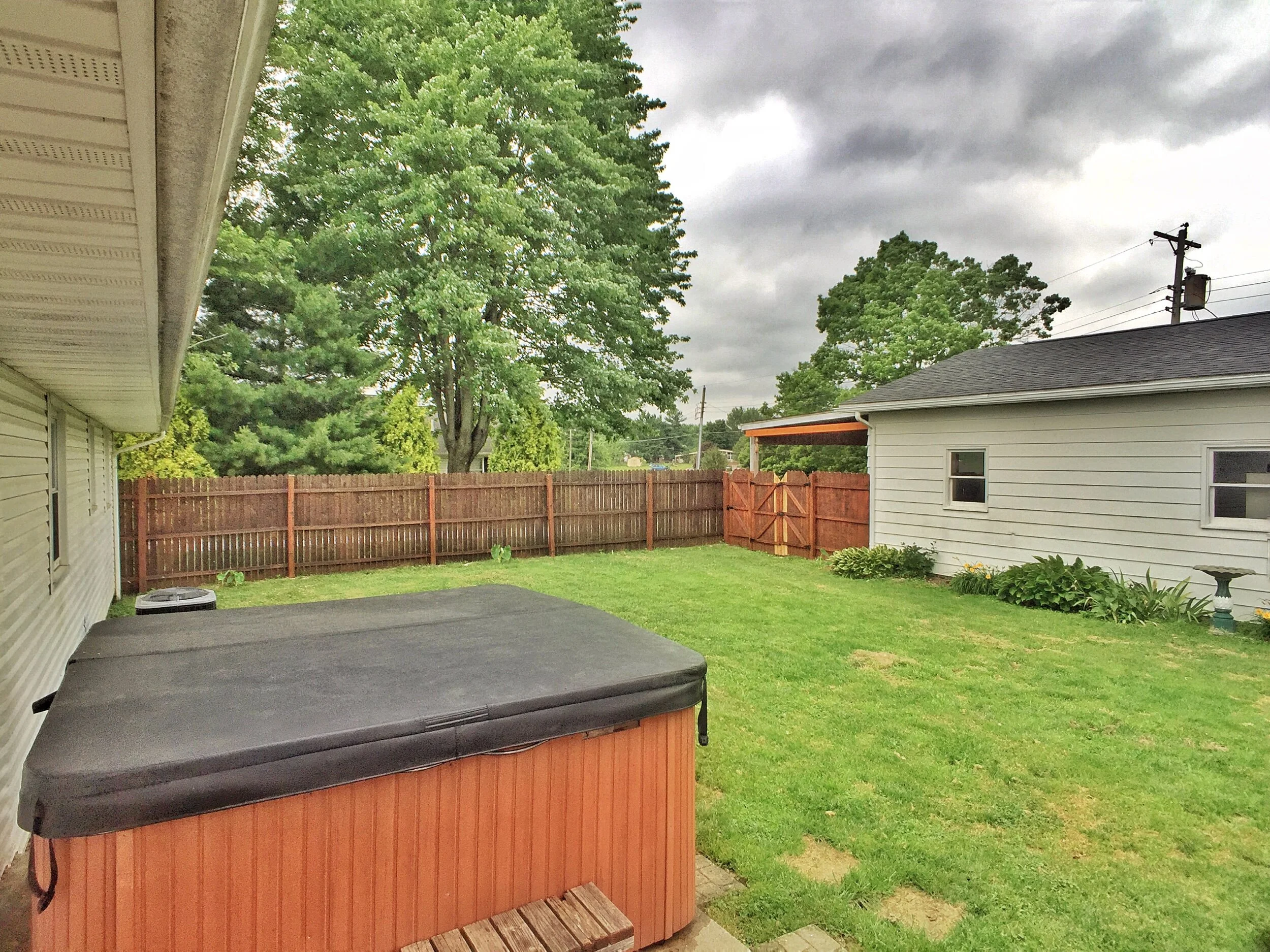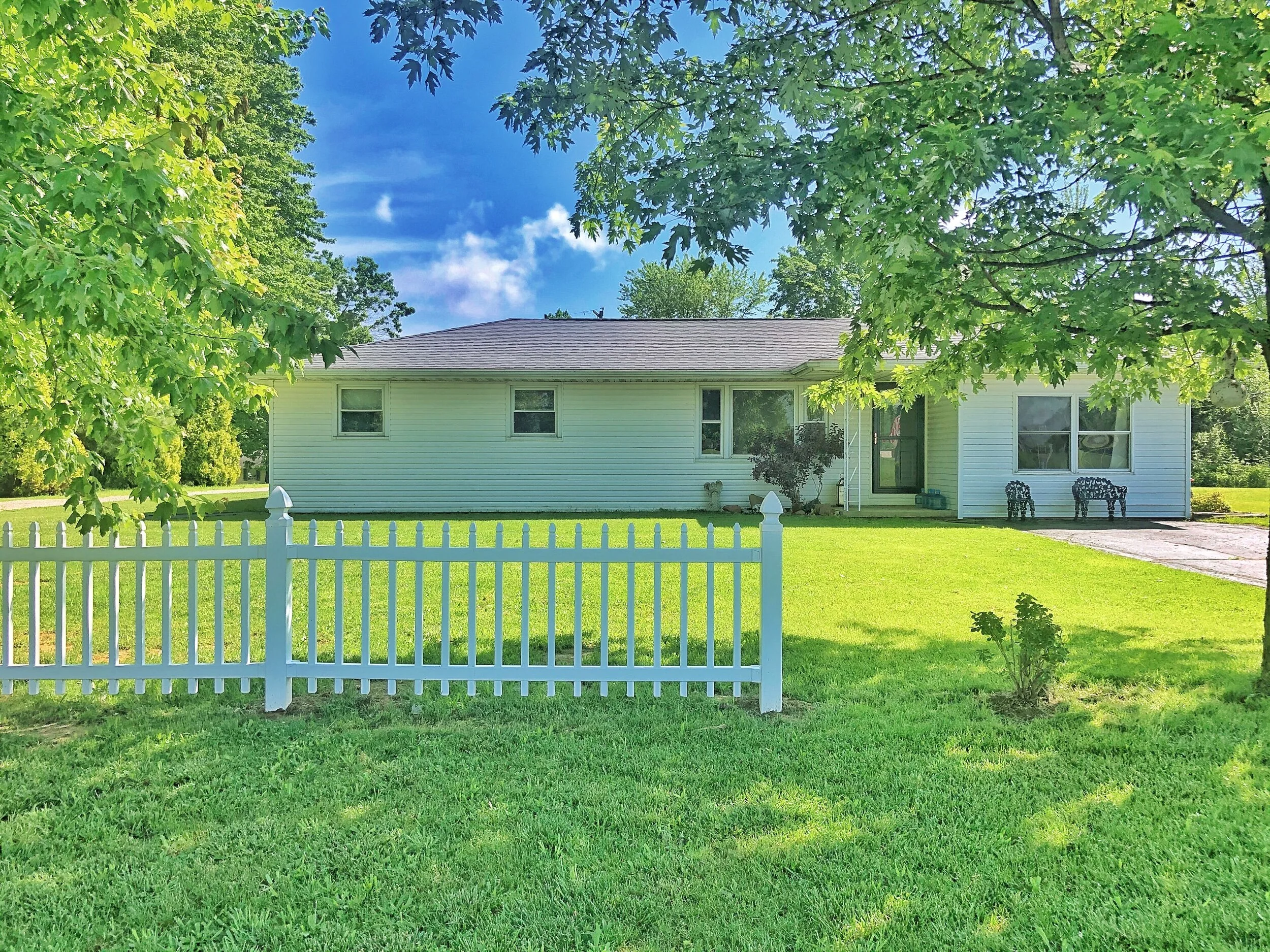 New carpet throughout, new paint, new central air, new gas furnace, new gas lines to garage and garage has a gas freestanding heater, new roof on garage, new privacy fencing in backyard with a dog door and run. Large tree lined 1/2 acre lot. 2 car detached heated oversized garage with a loft and a carport overhang. All Appliances included. Hot tub in back with a covered shelter and fire pit!
