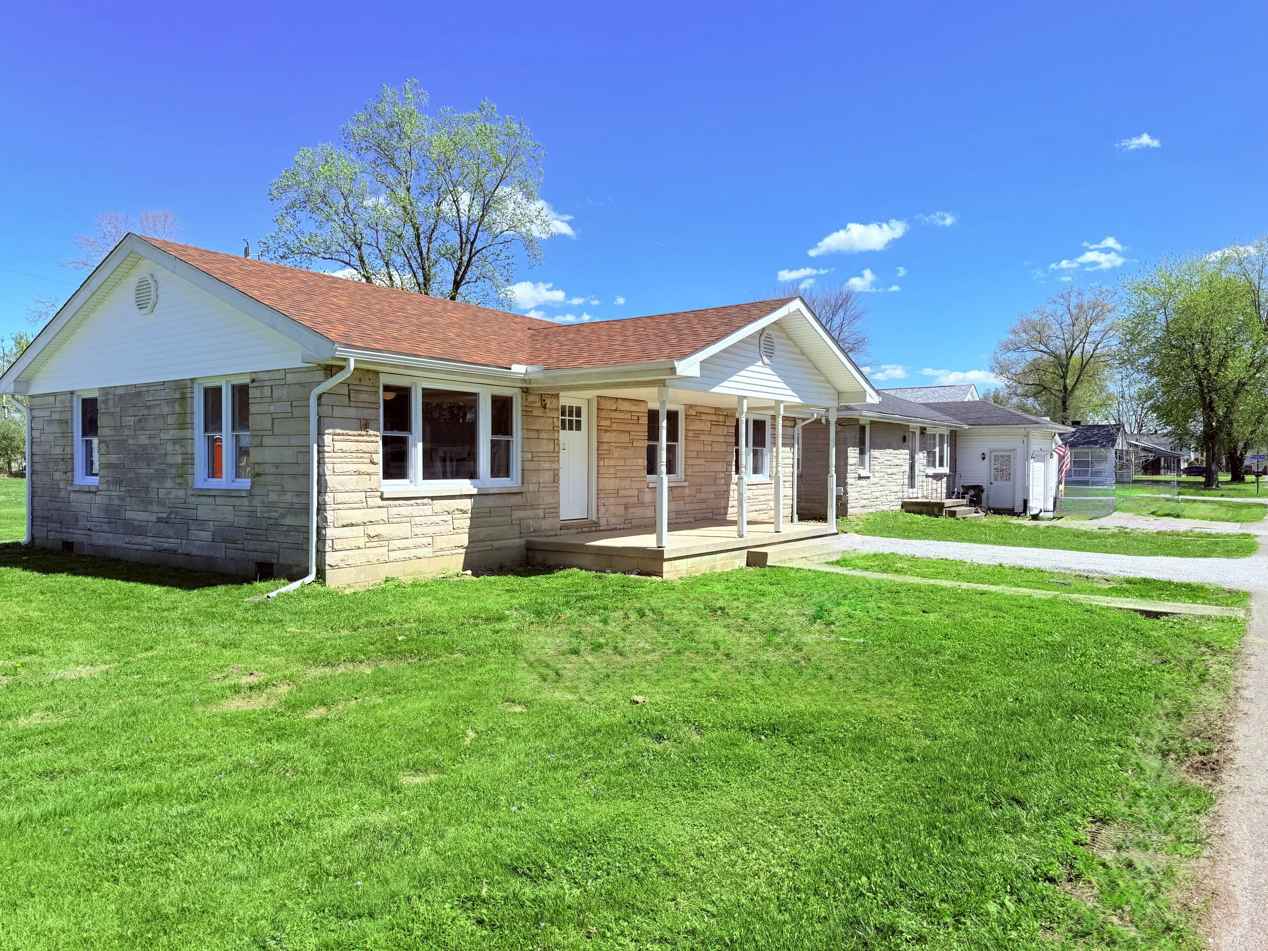 • New exterior doors and fresh gravel driveways.